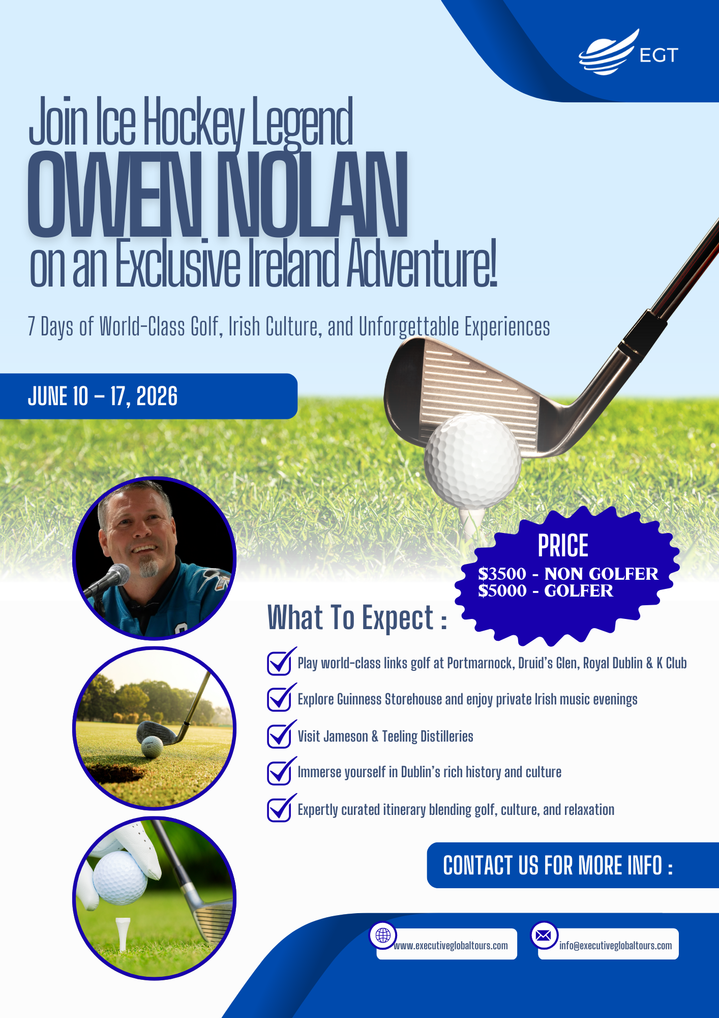 Executive Global Tours (EGT) Golf invites you to sample exciting and innovative golf itineraries that have been designed with the discerning traveler in mind. As a leader in custom designed golf and leisure tours for over 30 years, we have the experience and expertise to accommodate even the most discriminating traveler. We are committed to your golf enjoyment and to ensure you have the best in class trip.